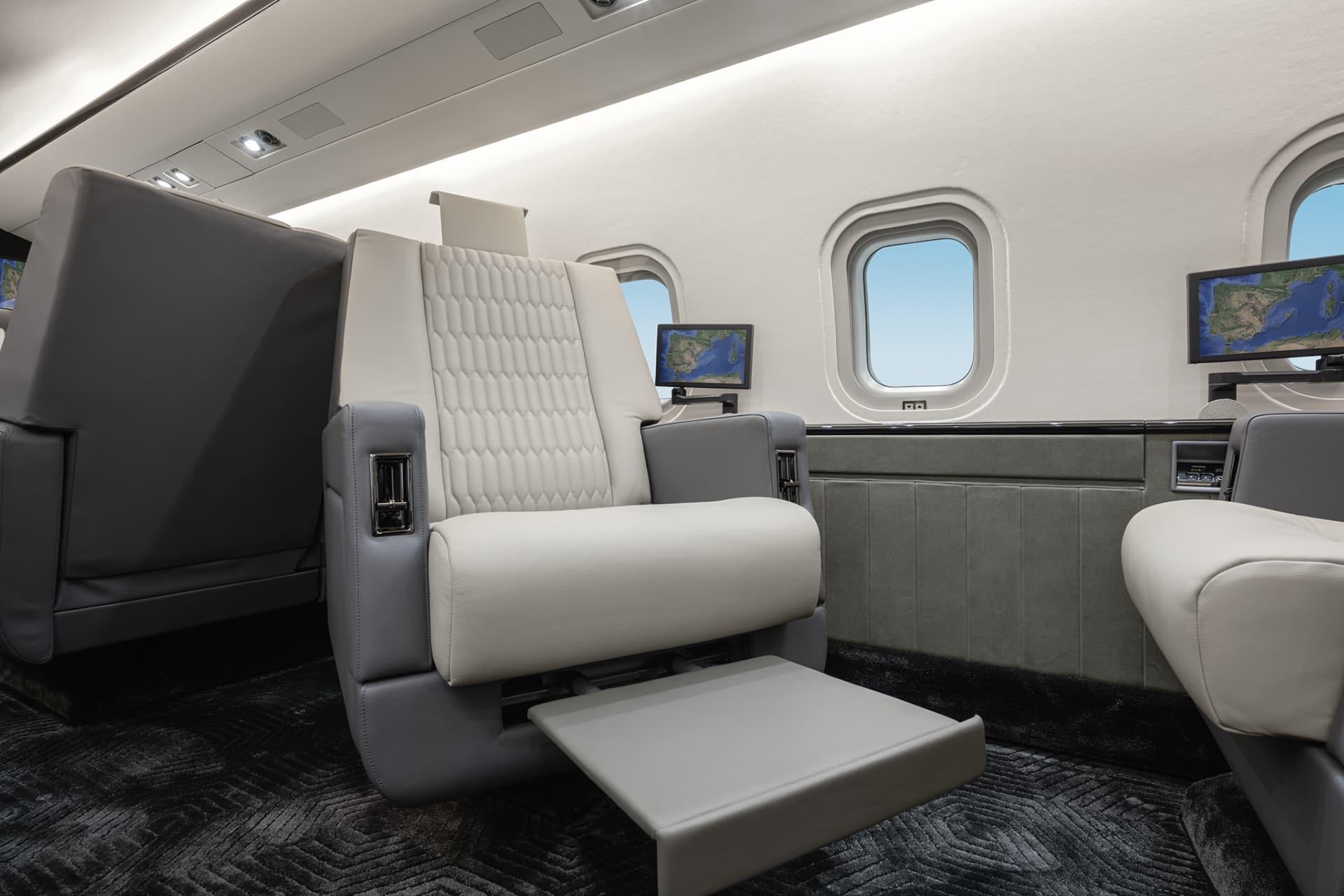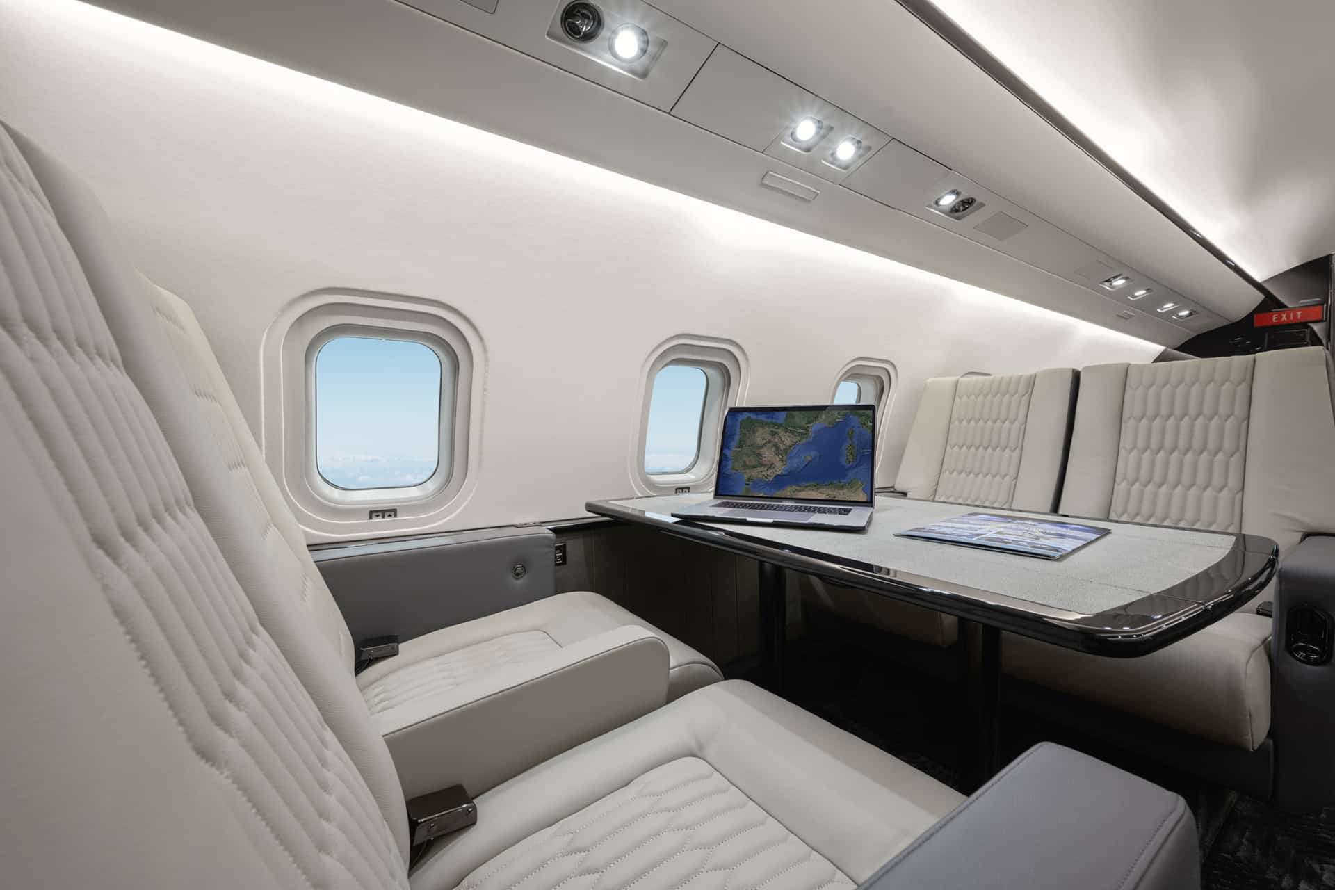 Challenger 604 D-APRS 1999 Challenger 604D-APRS #5412Bombardier Challenger 604 – best long-range jet in its class, customized cabin solutions for any corporate requirements, transcontinental range. Service entry 1999 Crew Captain & Co-Pilot & Flight Attendant (Stewardess) Capacity 12 passengers Cabin Length 8,66 m / 28,41 ft Width 2,49 m / 8,17 ft Height 1,85 m / 6,08 ft Seating Configuration 12 pax interior. divan belted for 4 Equipment Satellite phones, personal work spaces, conference table, galley-bar, lavatory Cruise speed 870 km/h 0,82 Mach 470 kts Max. Cruising Ceiling/Altitude 12.550 m / 41.000 ft Range 6.850 km / 3.700 nm Engines GE OnPoint Max. Take Off Weight 21.863 kg / 48.200 lbs Start 360° virtual cabin tour Download the brochureFloorplanSeating configurationSeating configuration Range MapSelect one or more aircraft at the bottom to compare the flight range. Drag and drop the pin to select your departure! Choose airplane: Learjet 60 Challenger 604 Global Express Javascript is required to show map! Back to the fleet overviewFor more information about this aircraft, please contact us at +49-911-36009-333 or via email at charter@fai.ag.Contact page Larionow Max2024-01-17T12:49:19+02:00 Related Posts STC for the EpiShuttle on aircraft type CL-600 obtained by FAI November 11th, 2021 FAI Technik completes extensive Challenger 604 refurb project April 6th, 2021